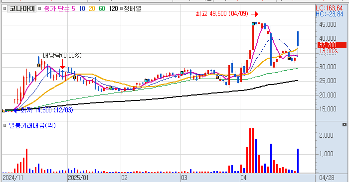 ✔ 급등락 리스크 감수 가능 → 코나아이 중심 단기 대응
